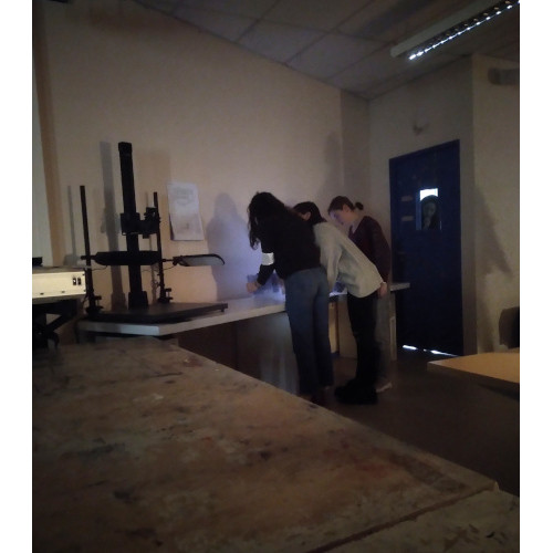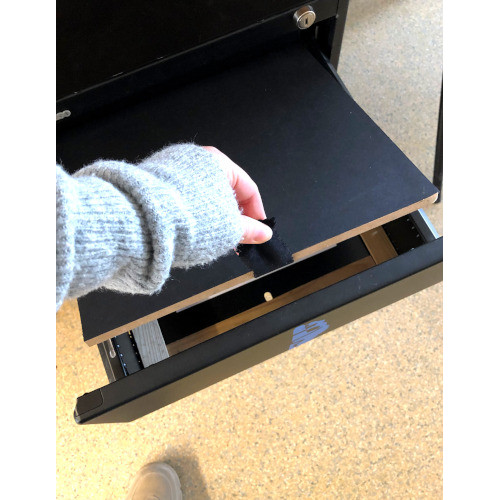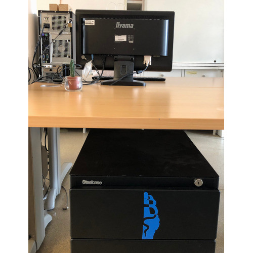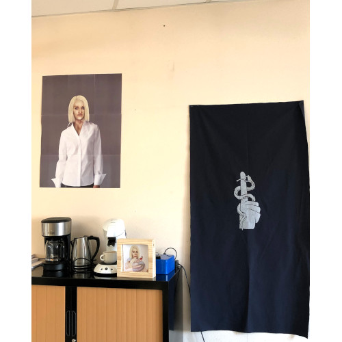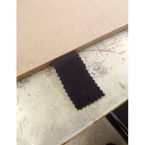 Regarding this first riddle, we had the idea to design a false background. This background would hide a sheet with a code sign written on it. To find which drawer is the right one, we added a plant on the desk, which designates the secretary’s desk. We have added the logo of the dictatorship on this drawer. In the protocol, participants may find a drawing of a plant as well as the phrase “sometimes sweetness is revealing”, related to the piece of soft fabric that reveals the correct drawer. For the false bottom, a wooden board, covered with black paper, was placed at the bottom of the drawer, slightly raised to hide a sign below. A textured fabric tab has been glued to it, to allow the board to be removed.