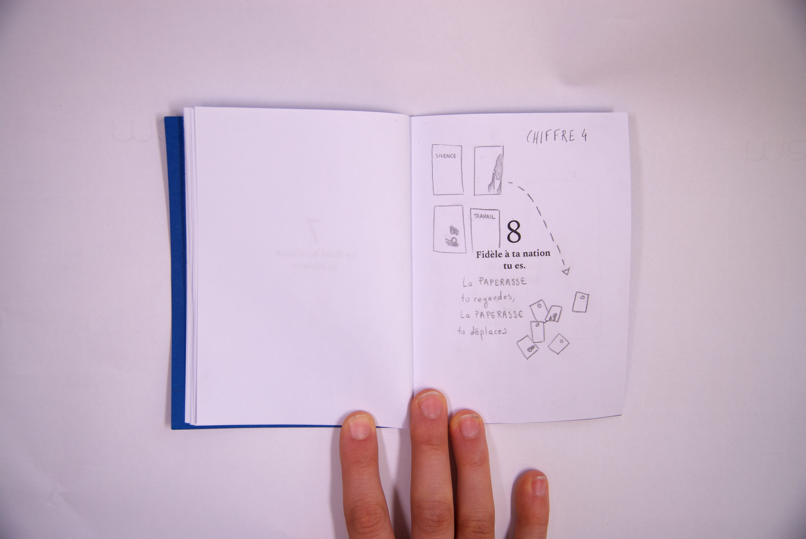 To achieve this escape game, we had to characterize the context of the game by creating a dictatorship related to silence. By confronting our ideas, we agreed on the regime of Marit Burit, an oppressive dictatorial regime where noise is totally banned. The basic rules of this dictatorship are gathered in a notebook called “the little blue book”, where several prescriptions are written: