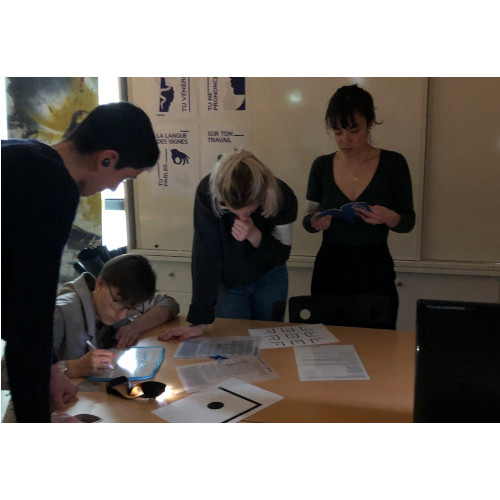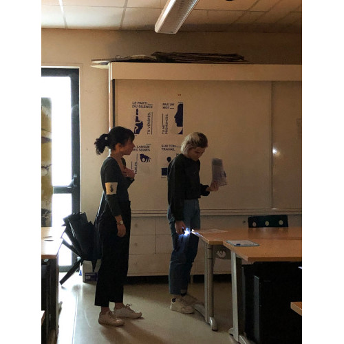 We did a first test of the game with four students from our class. This allowed us to make various observations to improve the progress of the escape game. Among other things, it is important to think of more means allowing players to communicate, to facilitate certain puzzles and to clarify the speech of the Game Master.