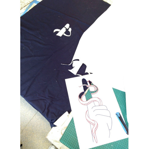 Regarding this first riddle, we had the idea to design a false background. This background would hide a sheet with a code sign written on it. To find which drawer is the right one, we added a plant on the desk, which designates the secretary’s desk. We have added the logo of the dictatorship on this drawer. In the protocol, participants may find a drawing of a plant as well as the phrase “sometimes sweetness is revealing”, related to the piece of soft fabric that reveals the correct drawer. For the false bottom, a wooden board, covered with black paper, was placed at the bottom of the drawer, slightly raised to hide a sign below. A textured fabric tab has been glued to it, to allow the board to be removed.