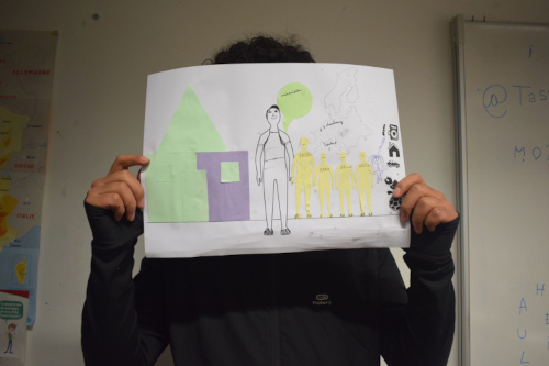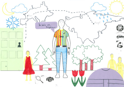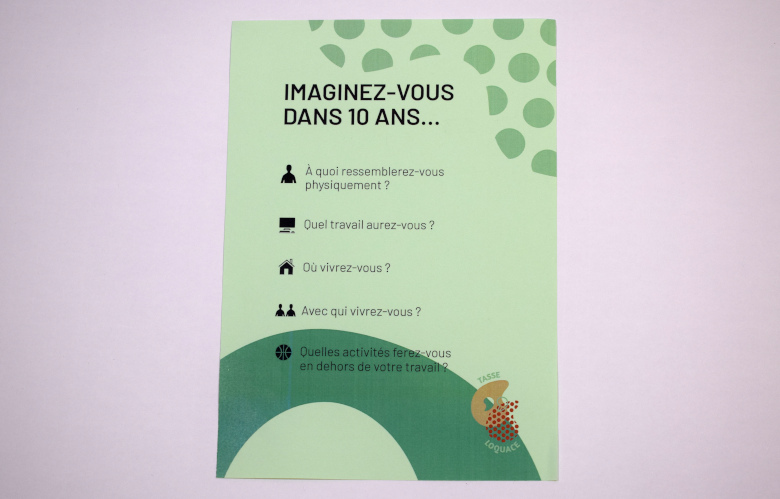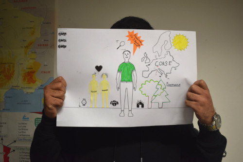 This tool takes place in a class of students in the French Orientation and Learning Module (MOAF) at Lycée Le Corbusier, where these people devote one school year to learning French. This workshop presents different objectives intended to advance my research. It is used to make contact with people with an immigrant background and to get to know each workshop participant better by making them talk about their current situation and what they would like to become. It seems easier to develop a project with people who can project themselves, so this exploration workshop allows these people to imagine themselves in the future and analyze these projections. In addition, the workshop allows them to study their willingness to get involved in an activity, even though they have not chosen to participate.
