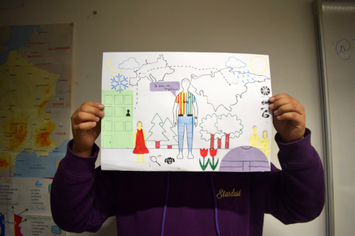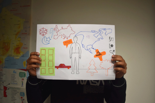 Before this exploration workshop, an immersion phase is set up, lasting one month, for five hours of MOAF studies. This step allows you to know the audience approached, that is to say the class with the best level of French. This immersion also allowed acculturation, by making us know the functioning of this public anchored in a school environment. It also allows participants to better understand our posture as designers, which differs from that of other stakeholders they encounter in their training. These first exchanges remain unequivocal and not very interactive: these people answer the questions without initiating a dialogue.