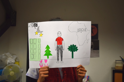 During this workshop, the designer is responsible for the organization: he designs the workshop, sets it up and establishes instructions given to the participants. The latter did not participate in the construction and the modalities of the unfolding. Only the opinion of Maryse, the head of the MOAF, was requested. On the other hand, the team of designers took care to avoid the development of a hierarchical relationship between them and the participants. This is why the Tasse Loquace agency, made up of Salsabîl, Clémence and me, participated in the mutual presentation activity and produced examples for the projection activity. Each actor was listened to and helped during the various activities. During the screening stage, the participants had a certain capacity for action since they could choose their way of answering the questions of the protocol, between drawing, collage and writing.