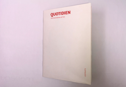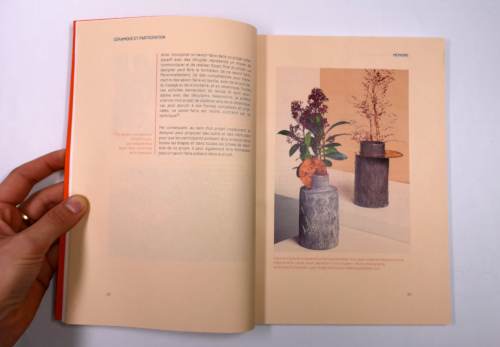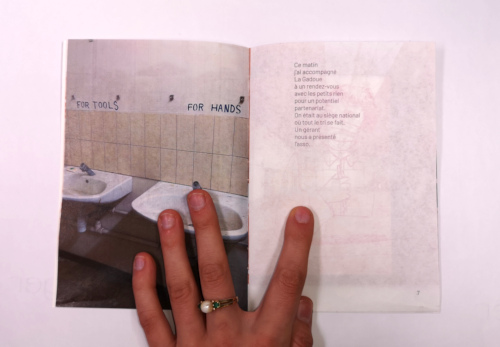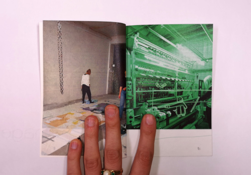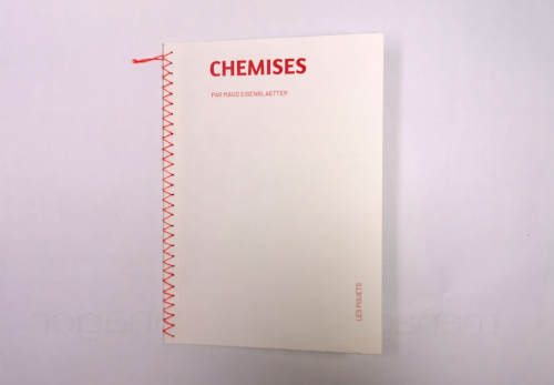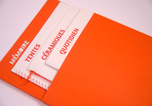 The largest of the six deals with the various projects of La Gadoue in connection with the reuse of used tent fabrics. Its binding is Japanese binding and its dominant color is light green. At the end of this edition, we can find, in a pocket, a smaller edition, in connection with the projects of Gadoue related to the reuse of shirts already worn. Its binding is also a Japanese binding and its dominant color is dark green.