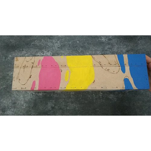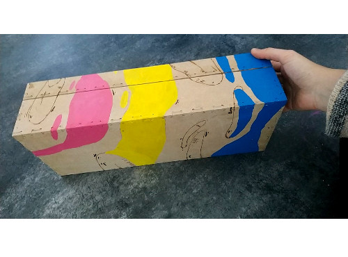 Once the structure of the object was finished, we engraved and painted it in three different colors to dissociate its three levels. These additions are nevertheless to be reviewed because they are too ornamental and can divert the child’s attention. To improve these additions, it would be necessary to simplify them and indicate the difficulty of levels with a more suitable choice of colors.