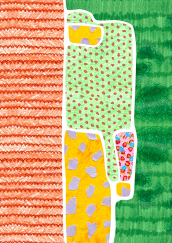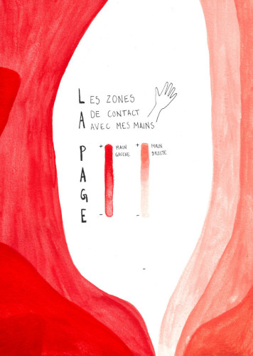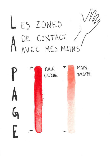 Ma carte de la page représente les zones de la feuille avec lesquelles je suis principalement en contact quand je la prends en main. Elle a été réalisée à partir d’aquarelles.