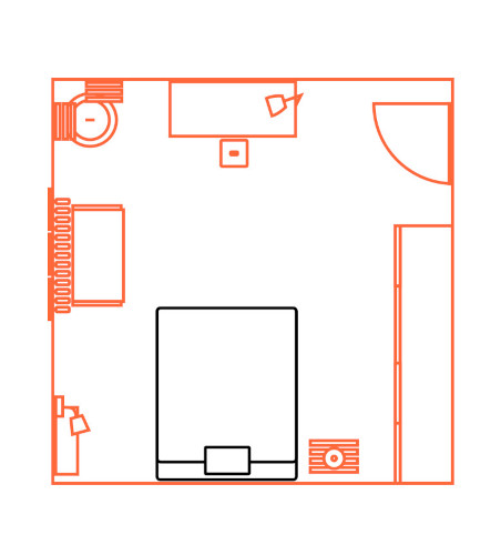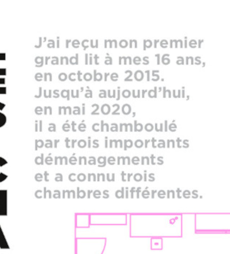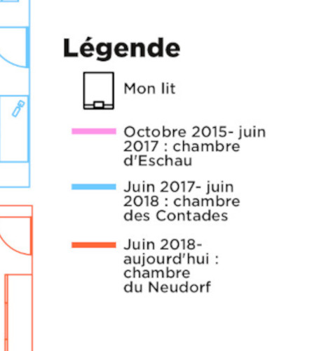 Pour la carte de ma chambre, je suis partie de mon lit et des chambres qu’il a occupées. J’ai détaillé chacune sous forme de plans, réalisés au dessin vectoriel, entre ma chambre d’Eschau, ma chambre des Contades et ma chambre du Neudorf.