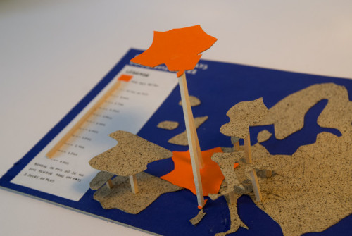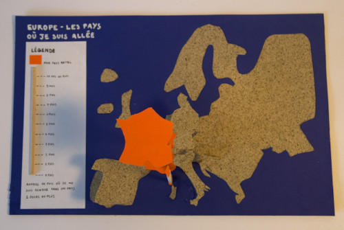Cette carte, réalisée grâce au collage, présente l’Europe selon le nombre de fois où je me suis rendue dans un pays.