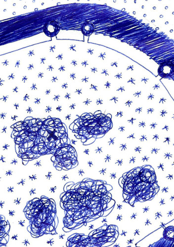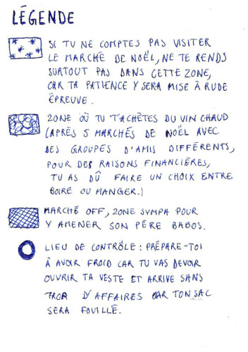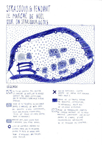 Cette carte représente ma perception de Strasbourg durant le marché de Noël. Elle est réalisée au stylo bic.