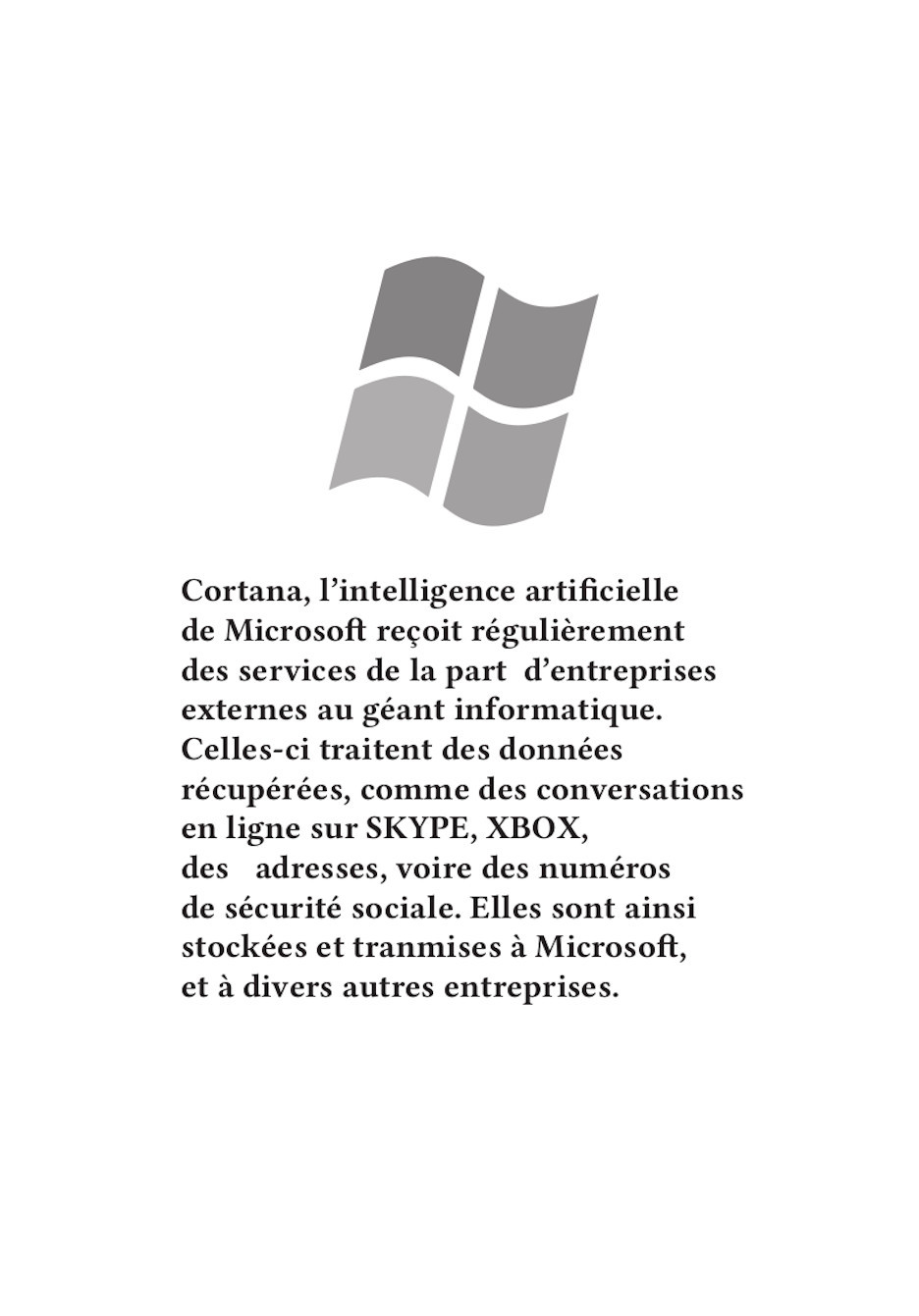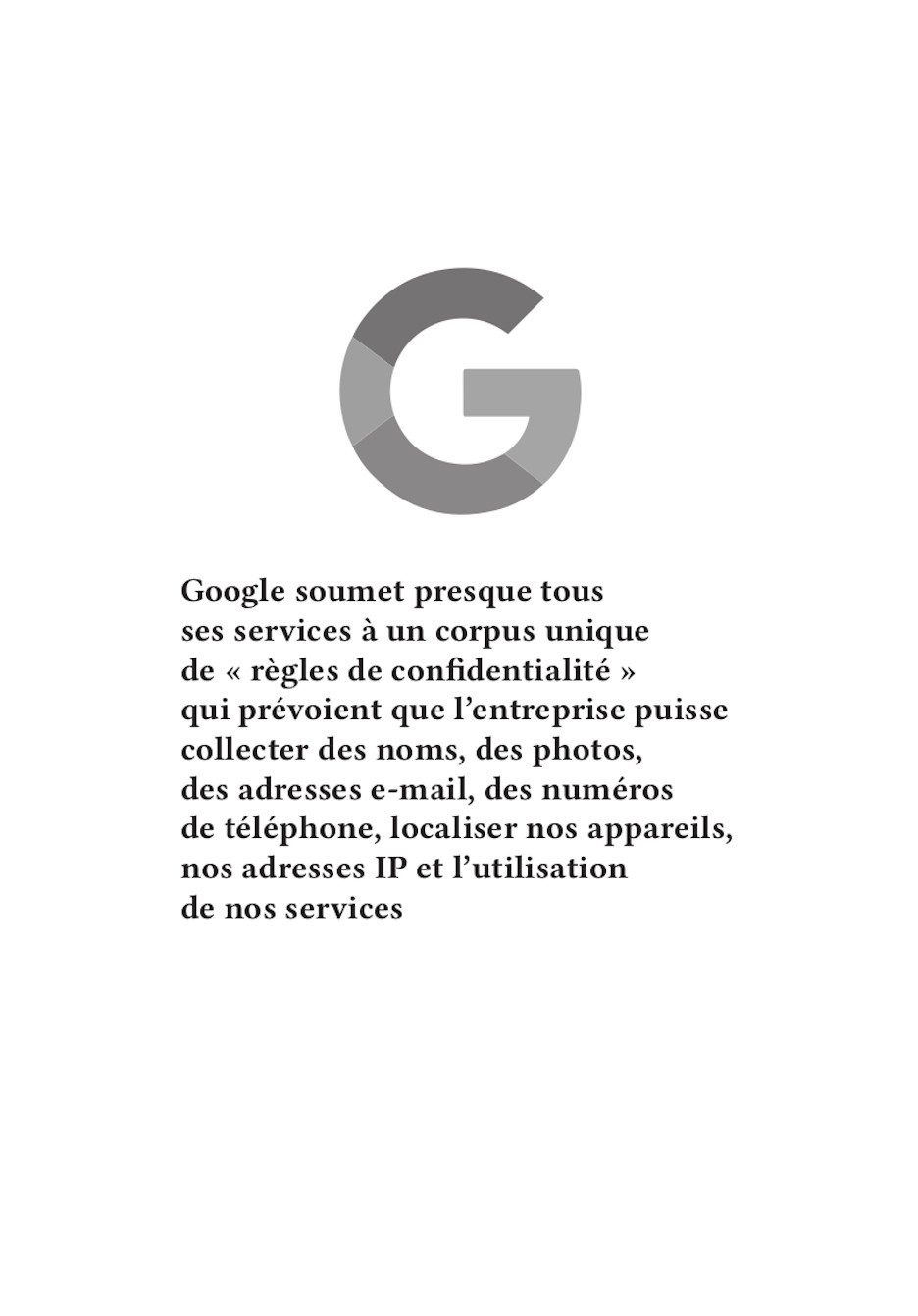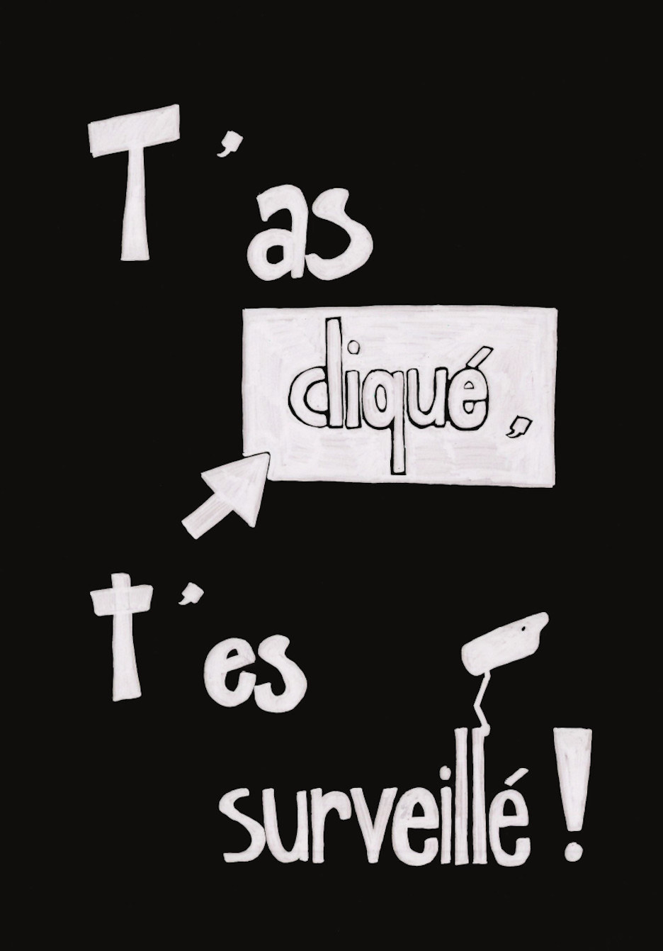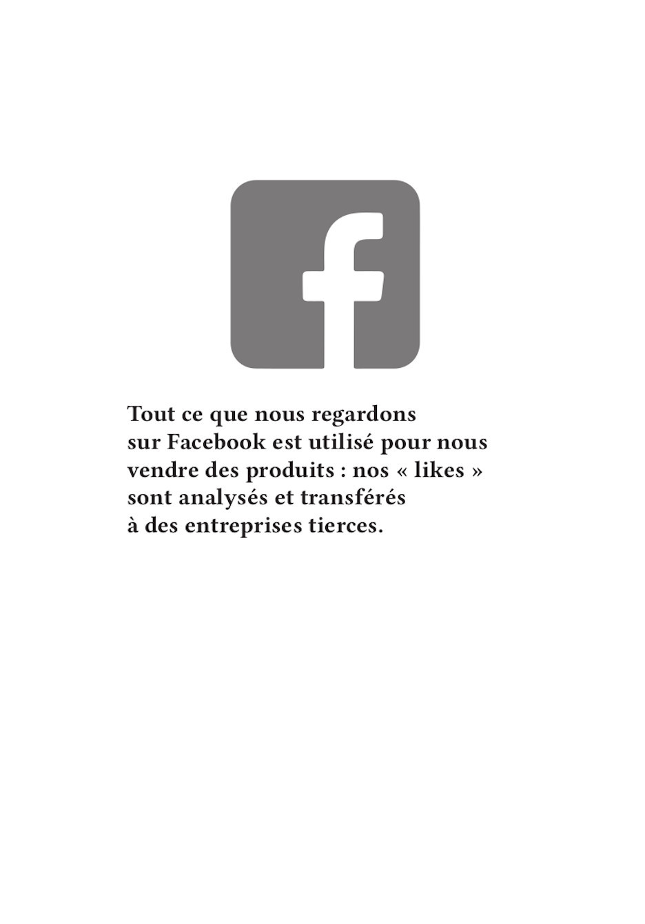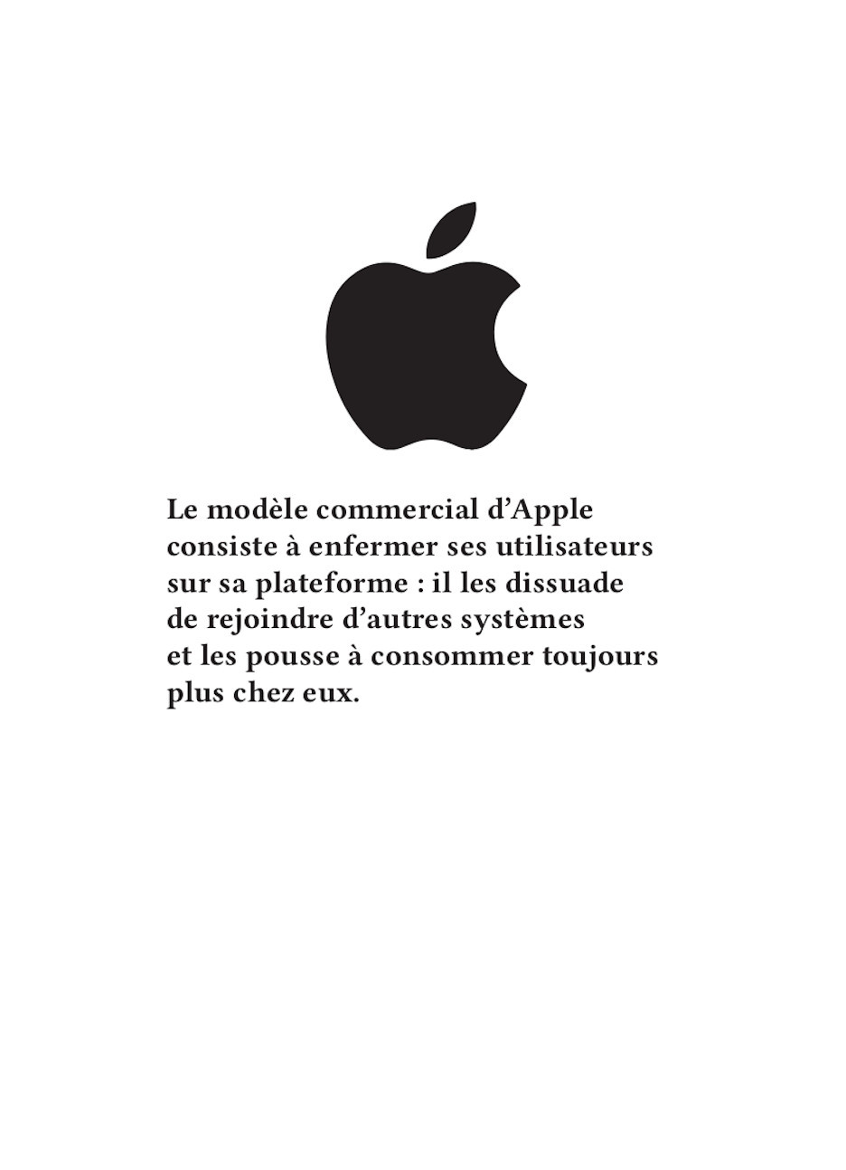Nos publications traitent des travers des GAFAM (Google, Apple, Facebook, Amazon, Microsoft). En nous inspirant particulièrement du graphisme militant de mai 68, nous avons réalisé 16 affiches. Au recto, elles présentent une illustration expressive, souvent accompagnée d’un slogan simple et mémorisable. Au verso, elles détaillent plus amplement la dénonciation faite.