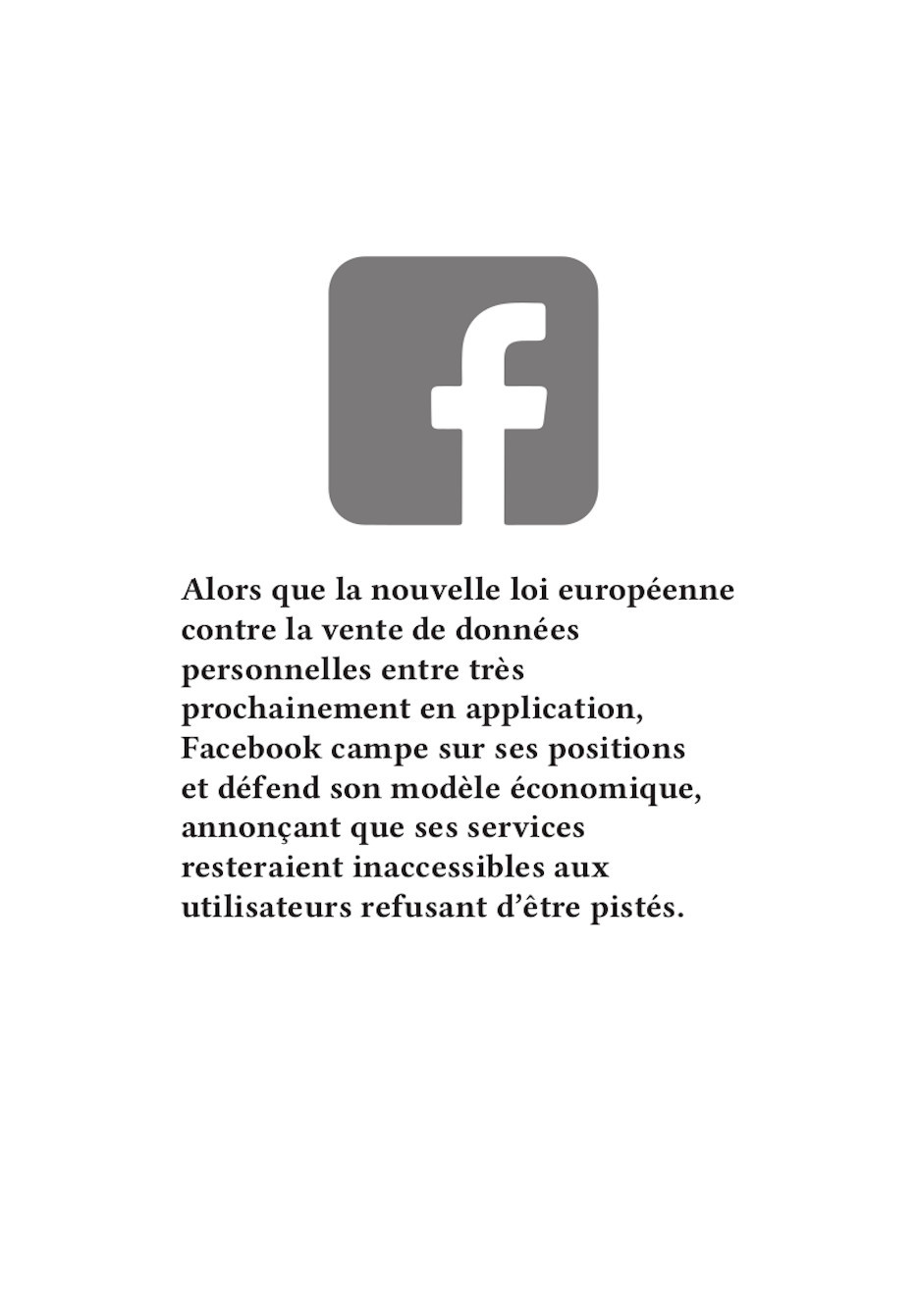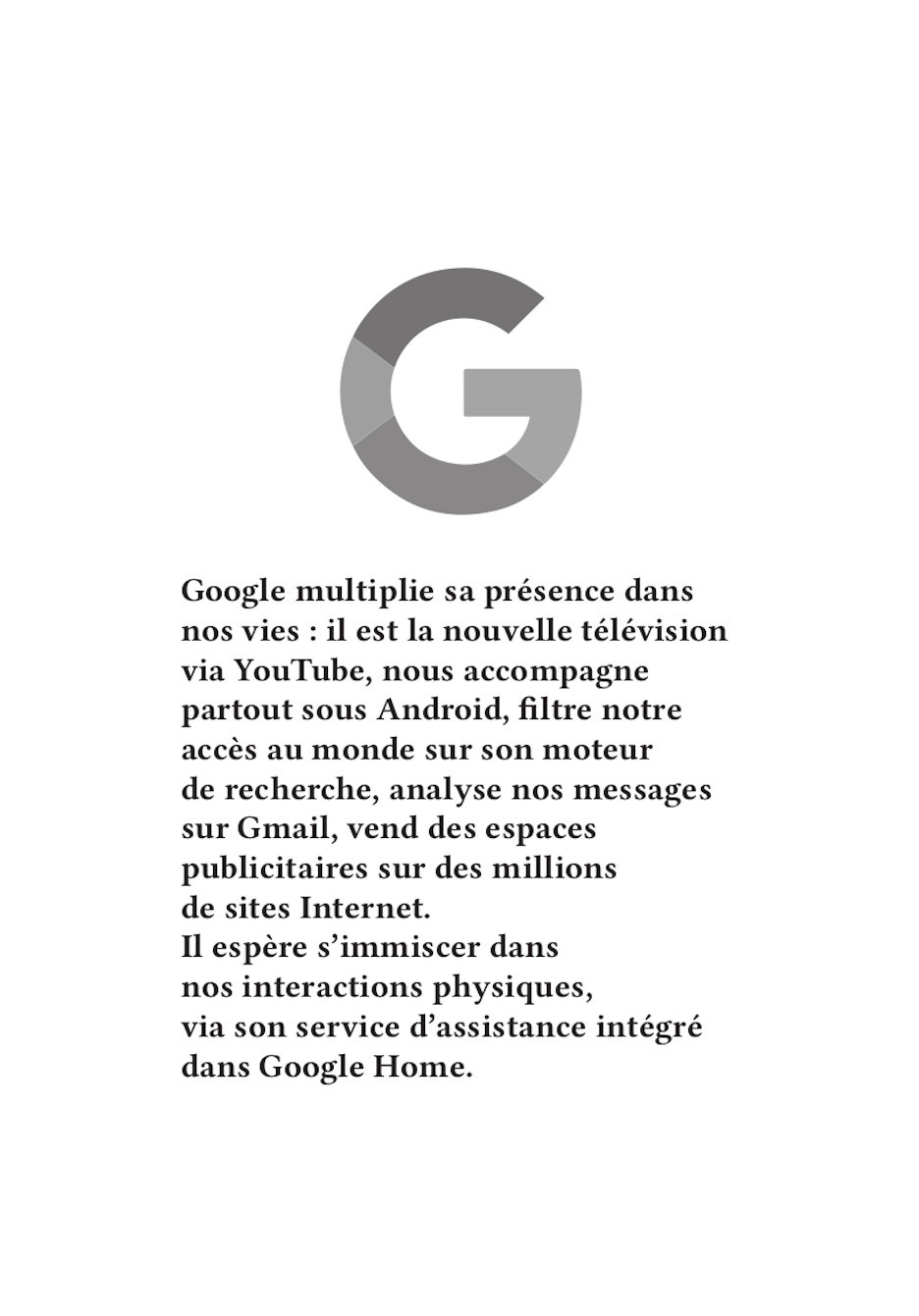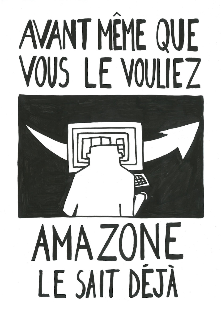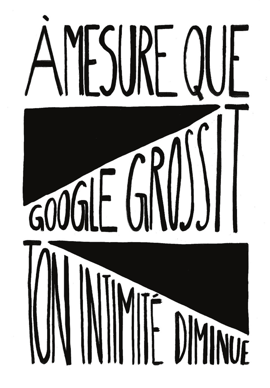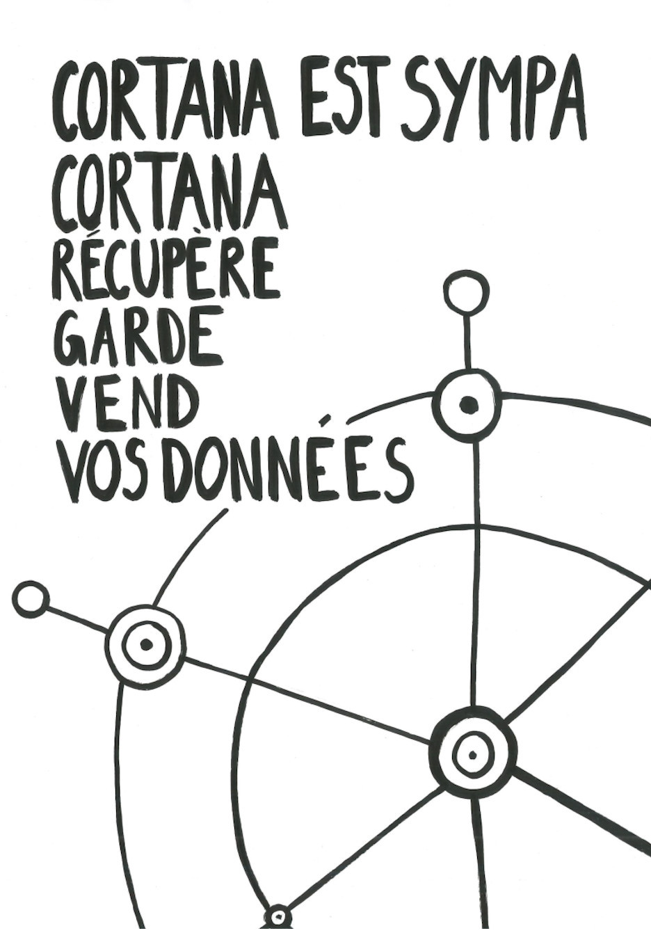 Nos publications traitent des travers des GAFAM (Google, Apple, Facebook, Amazon, Microsoft). En nous inspirant particulièrement du graphisme militant de mai 68, nous avons réalisé 16 affiches. Au recto, elles présentent une illustration expressive, souvent accompagnée d’un slogan simple et mémorisable. Au verso, elles détaillent plus amplement la dénonciation faite.
