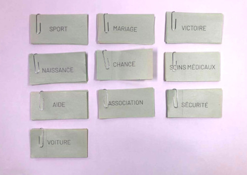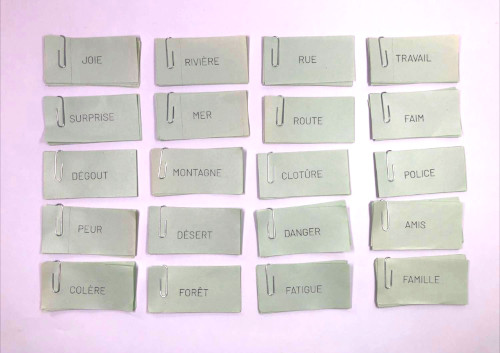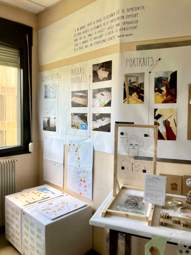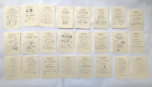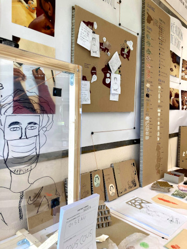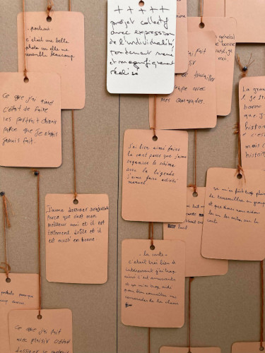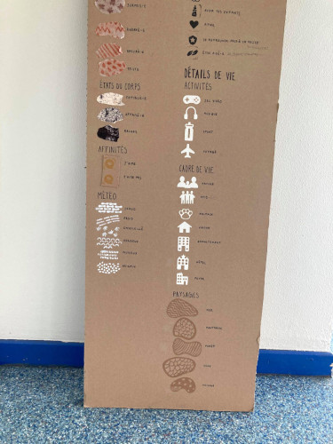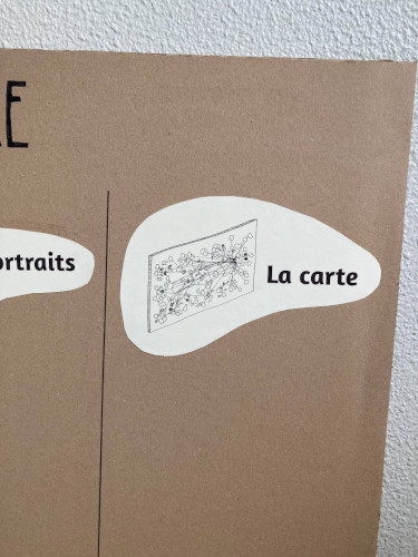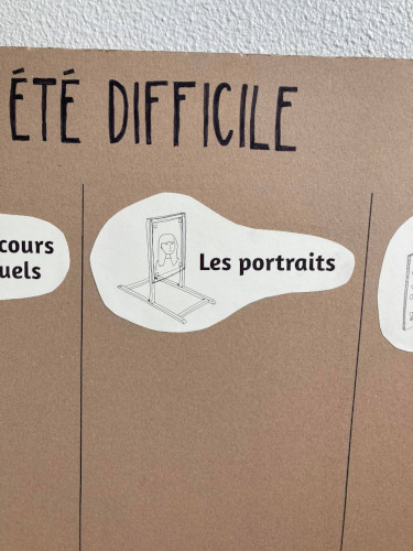 Au cours de ce projet, j’ai pu mettre en place des ateliers pour faire participer les élèves du MOAF à la réalisation du projet. J’ai également pensé à des variants de ces ateliers pour que les participants détaillent davantage leurs parcours de vie, que les visuels des étiquettes soient plus variés, qu’ils respectent davantage les sens des figurés, etc.