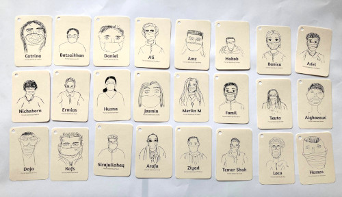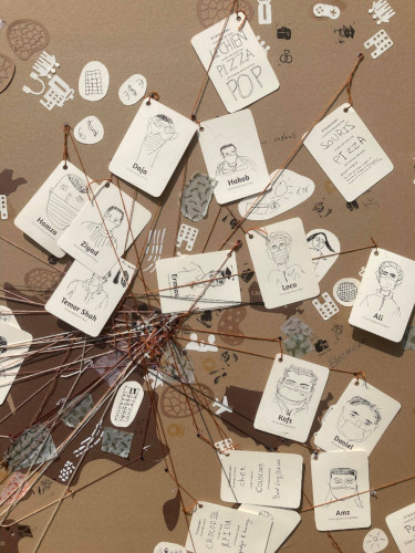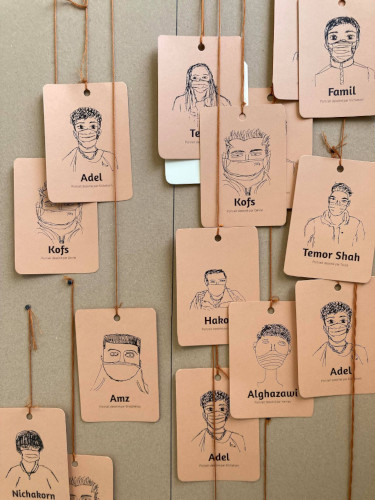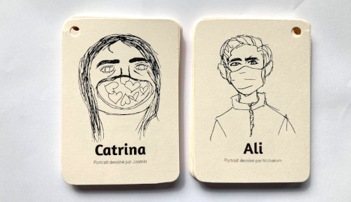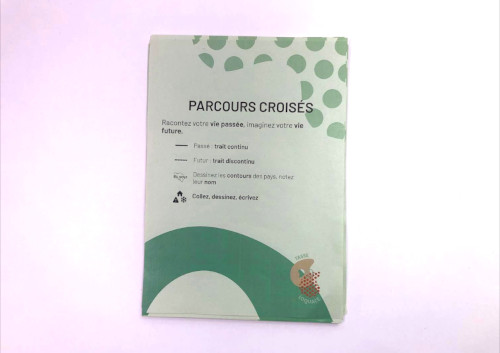 Cet atelier avait pour objectif de faire réaliser aux participants leur portrait du visage et leur portrait chinois pour créer des étiquettes présentant leur personnalité influencée par leur parcours de vie et les cultures ayant environnées leur passé. Ces étiquettes sont exposées au début et à la fin du tracé de chaque parcours sur la carte.