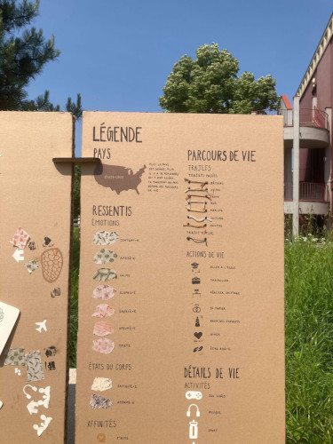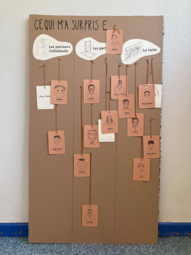 Les participants ont ainsi créé cette carte ensemble. Chacun a présenté son parcours. Cette étape a été un moment de réalisation collectif où les personnes ont pu échanger sur leur vie et découvrir les histoires des autres.