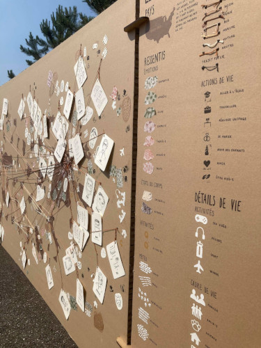 Pour améliorer mon projet, j’aurais également pu penser à des ateliers permettant aux participants de penser à la façon dont ils souhaitent représenter leur parcours de vie et au support où ceux-ci sont affichés.
